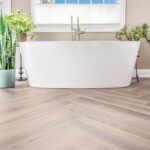 This spa-like bathroom remodel exudes serenity and elegance, with Whisper Forest 8×40 matte rectangular tiles bringing a natural, wood-like texture to the floors. The walls feature Zera Annex Bianco 12×24 tiles, creating a crisp, bright backdrop that enhances the calming ambiance. Together, these elements craft a tranquil retreat that perfectly balances warmth and sophistication.