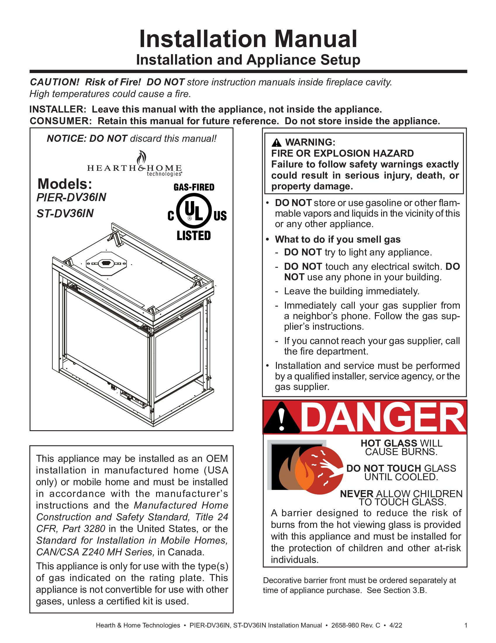 - Gas, Modern, See-Through, Traditional