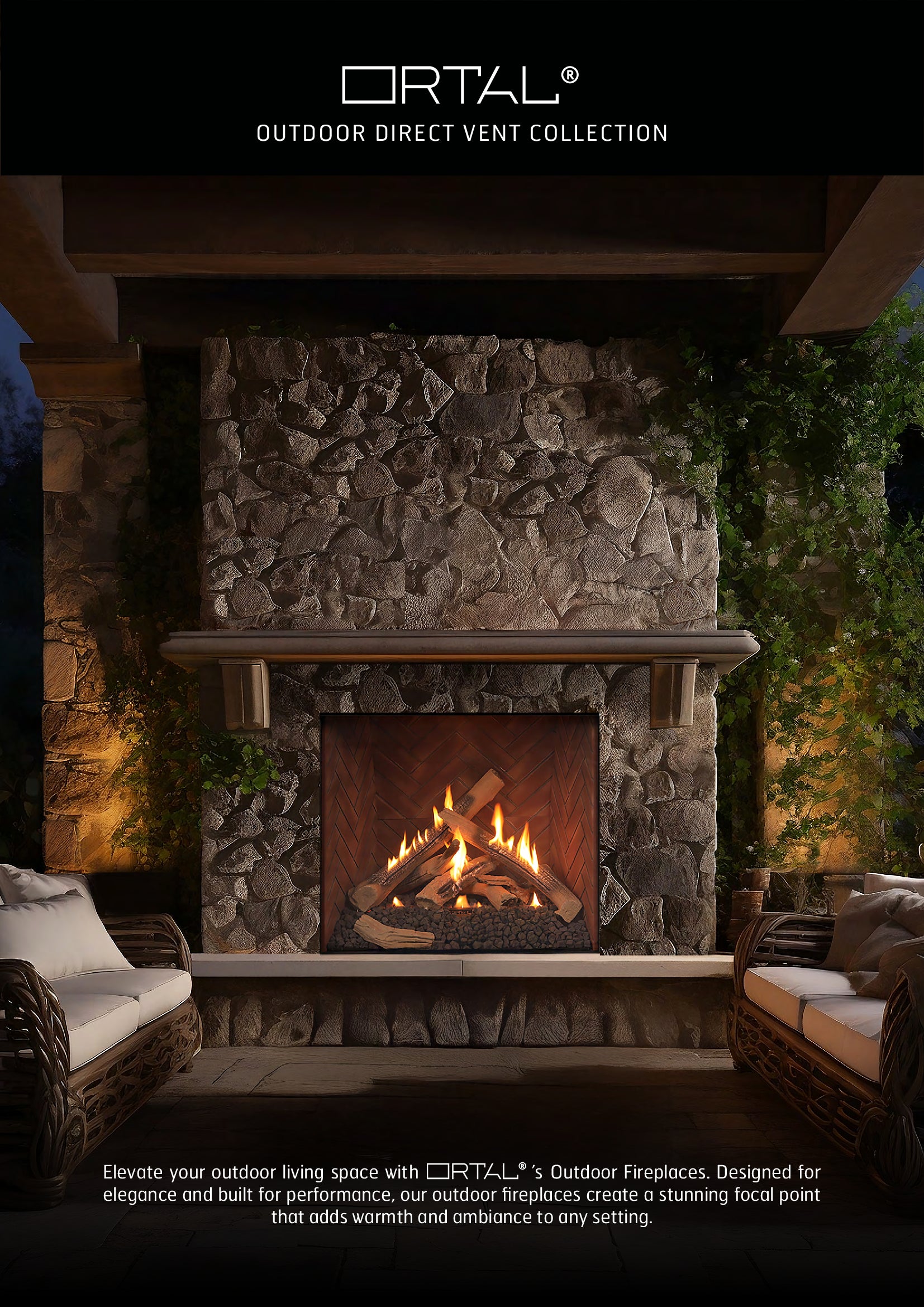 Discover the power of ORTAL’s efficient direct-vent technology, designed to deliver a safe, comfortable ambiance with exceptional heat distribution. Available with both Signature and Wilderness Burners, these fireplaces are the ideal choice for those seeking a more controlled outdoor environment. Built to endure the elements, ORTAL’s Outdoor Direct Vent fireplaces combine advanced performance with lasting beauty, ensuring your outdoor space remains a stunning retreat for years to come.