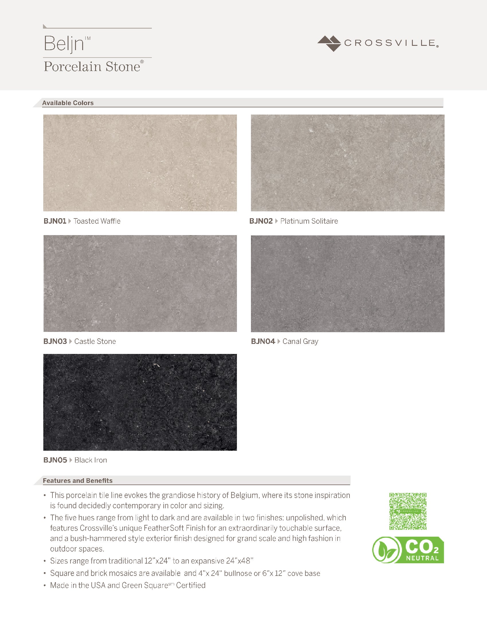 Soft, yet strong. Rugged, but refined. Inspiring, but down to earth. Beljn by Crossville is all of this and more. This porcelain tile line evokes the grandiose history of Belgium, where its stone inspiration is found, but is decidedly contemporary in color and sizing.