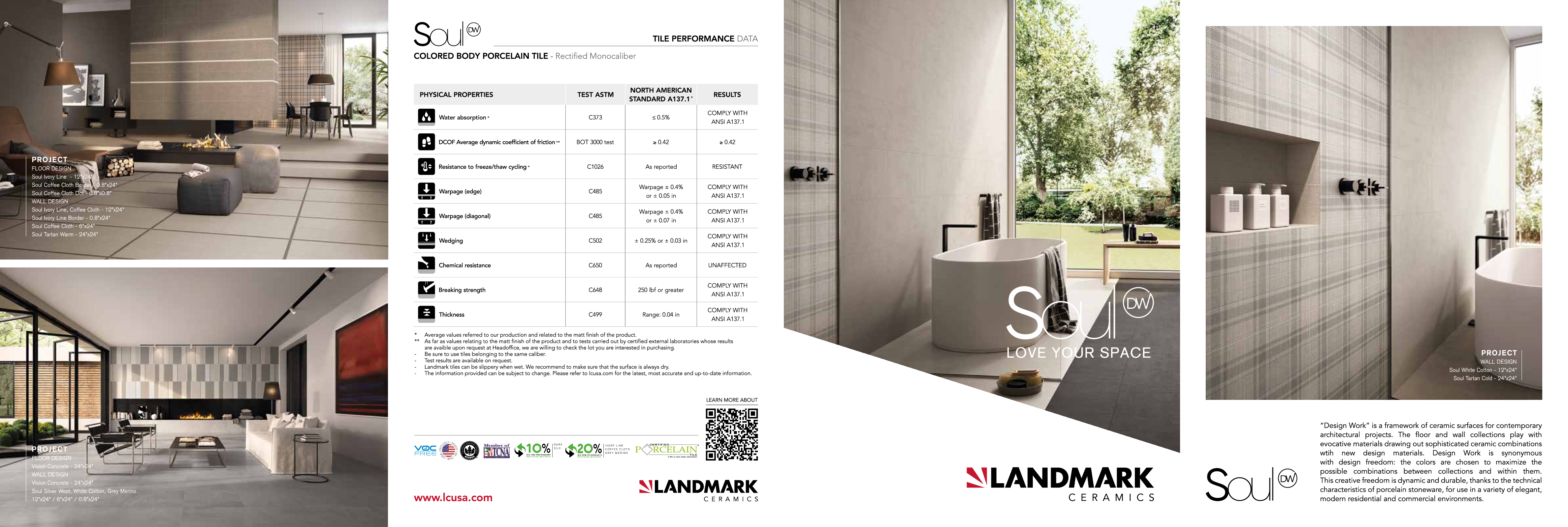 A refined reprocessing of materials combines the strength of ceramic with the memory of fabric, endowing residential and commercial rooms with warmth, strength, softness and countless design possibilities. The Soul collection offers visual and tactile suggestions of elegant furnishing fabrics. Rooms have an elegant charm and a contemporary look and can be lived in freely because of the excellent technical performance of porcelain stoneware.