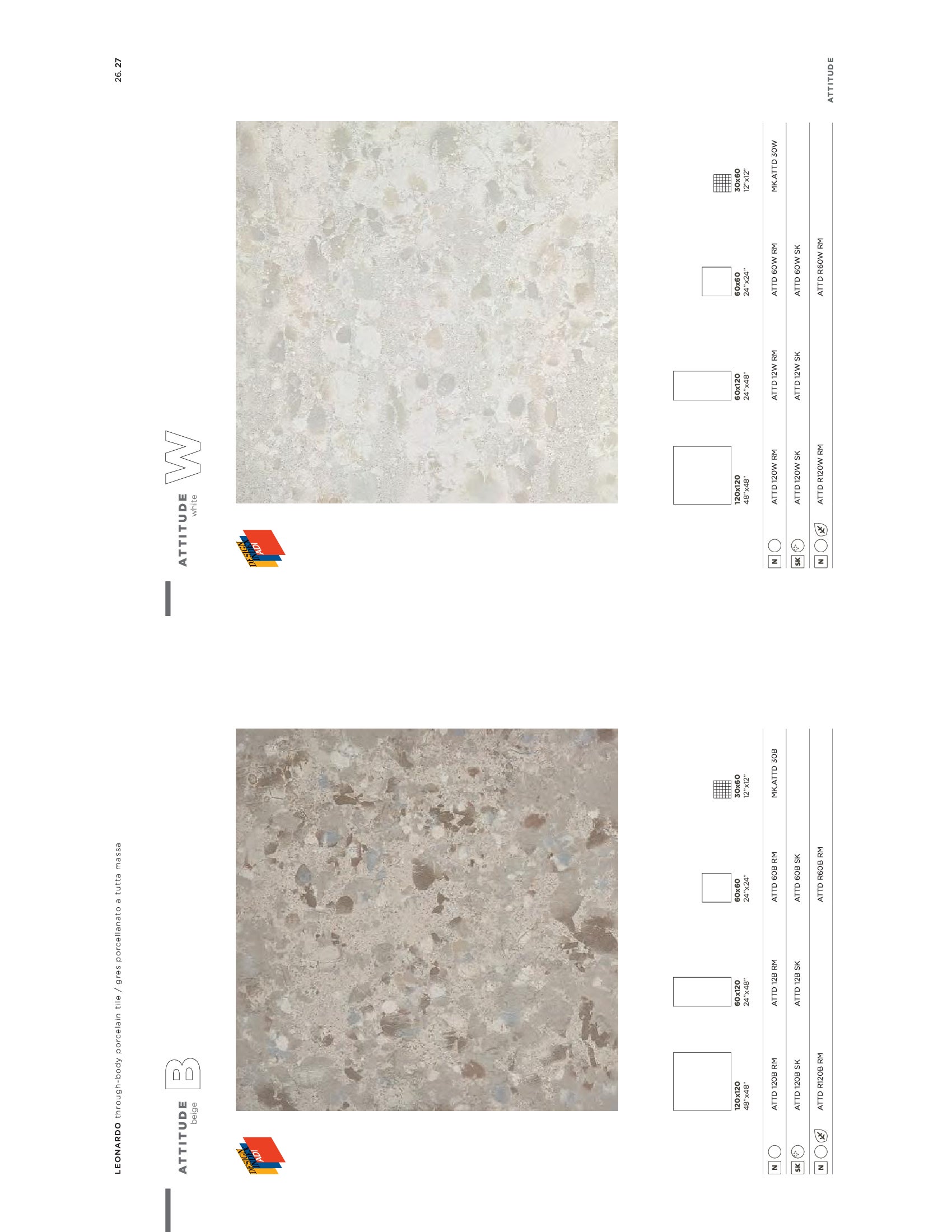 Attitude is the perfect combination of technique and beauty, presenting itself as an “industrial technological stone” whose value is both aesthetic and performing. A new technology that allows for the chips and grains to be arranged in a perfectly casual fashion on the surface; both in terms of size and colour blend.