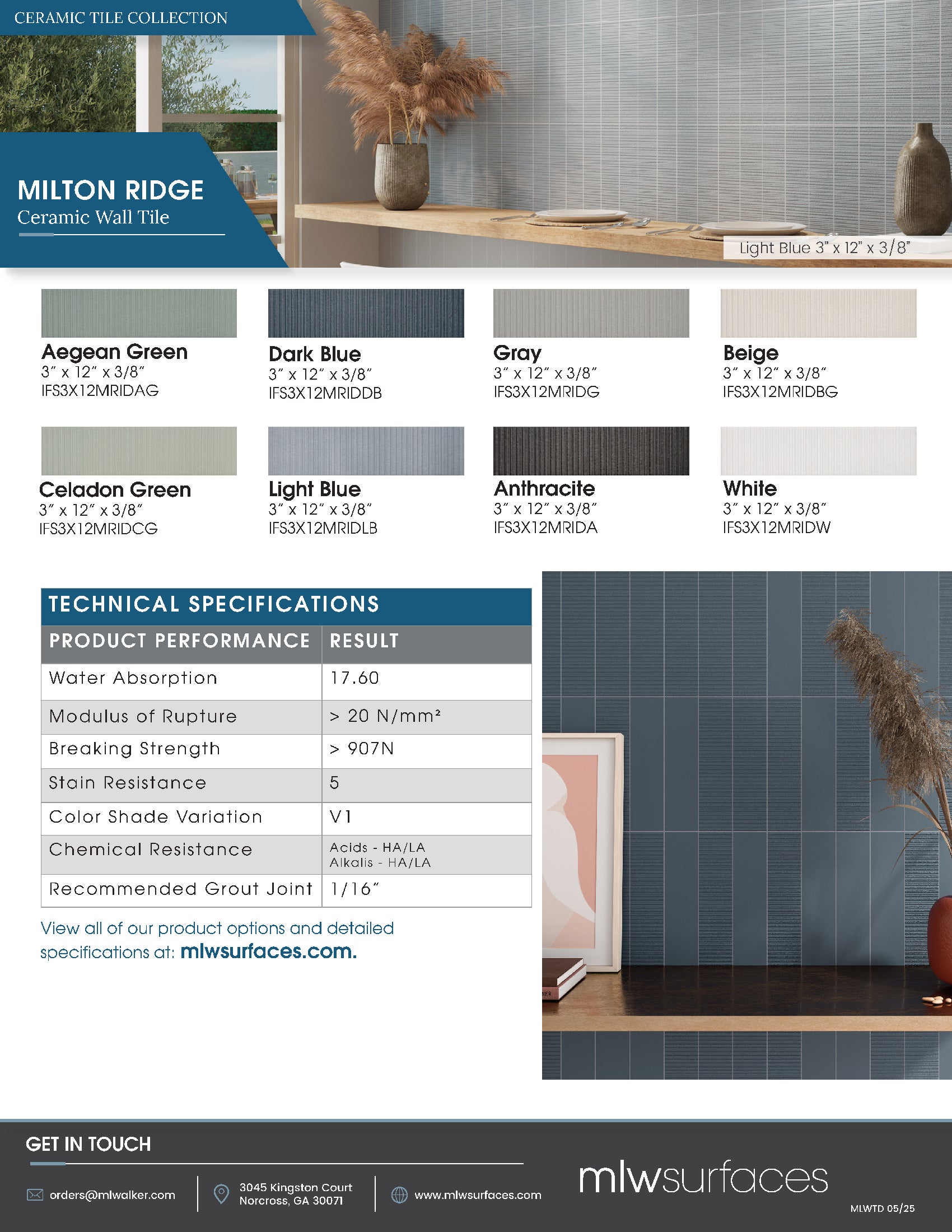 3x12 Ceramic Fluted Wall Tiles. See Also "Milton"